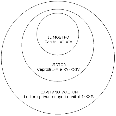 Un’altra somiglianza tra le due opere è la tecnica narrativa. Anche in Frankenstein c’è una molteplicità di narratori e punti di vista, sebbene nella storia di Jekyll e Hyde siano successivi l’uno all’altro, mentre in quella di Victor e del suo mostro siano rinchiusi l’uno nell’altro in questo modo: